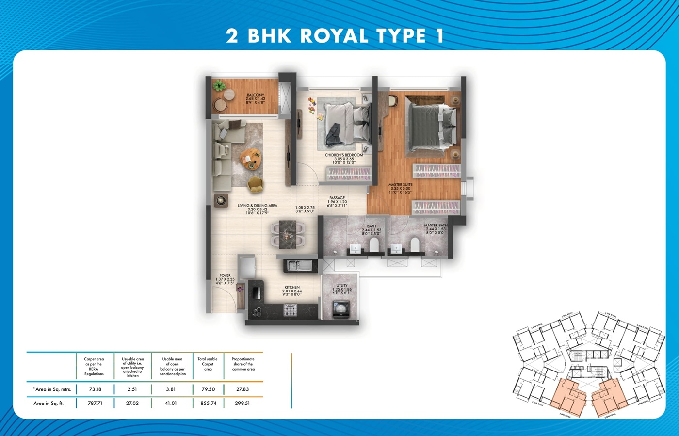 2 BHK Royal 855.74 - 868.65 Sq.Ft. ₹ 93.90 Lacs* Onwards