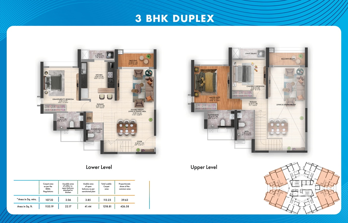 3 BHK Duplex 1218.81 Sq.Ft. ₹ 1.49 Cr* Onwards